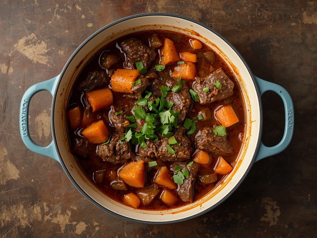 A rich and hearty beef stew inspired by Anthony Bourdain, featuring tender beef chuck, vegetables, and a flavorful red wine broth. A classic comfort food recipe.