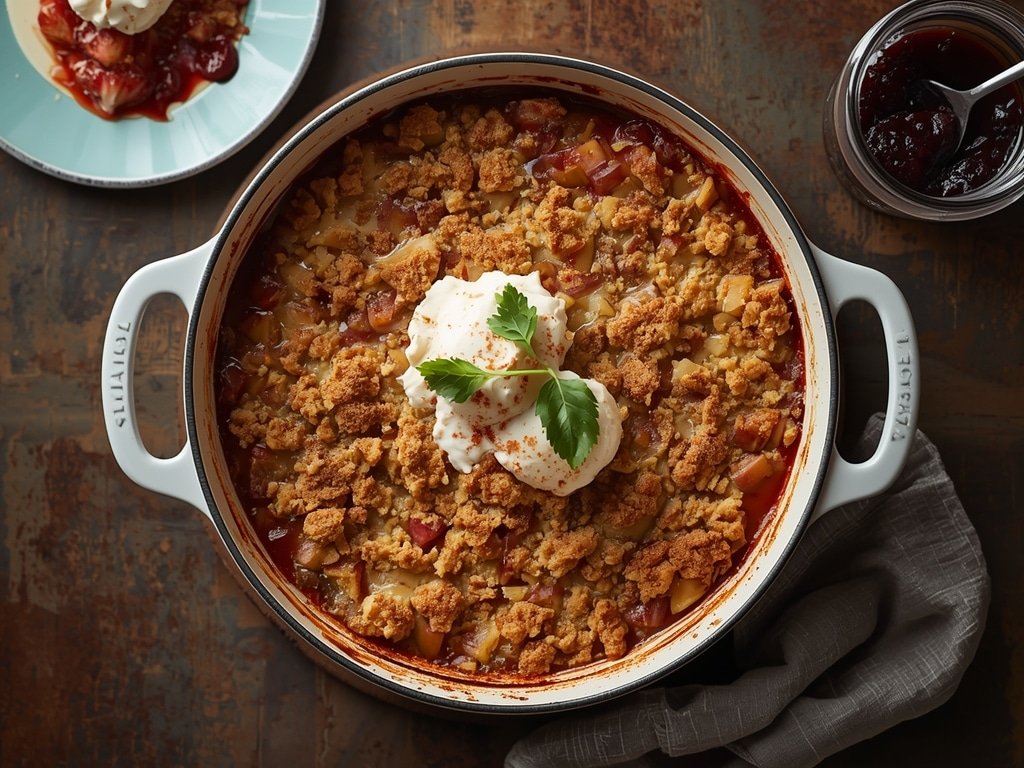 Absolutely! Strawberries, raspberries, or even a touch of apple can be added to enhance the flavor and texture of your Buttery Rhubarb Crisp. Just be mindful of the overall sweetness and adjust the jam accordingly.