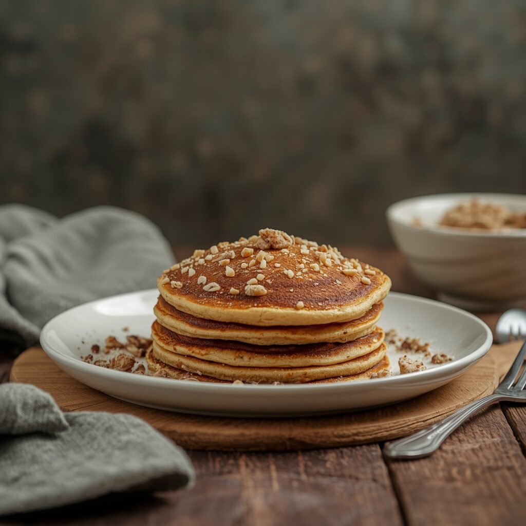 Besides the classic cream cheese glaze, cinnamon roll pancakes pair well with pecans, walnuts, fresh berries, whipped cream, maple syrup, or even a dusting of powdered sugar for an extra touch of sweetness.