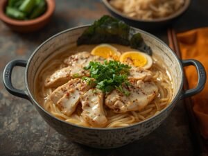 A comforting and flavorful Creamy Garlic Chicken Ramen recipe that combines the best of ramen and creamy garlic chicken pasta.