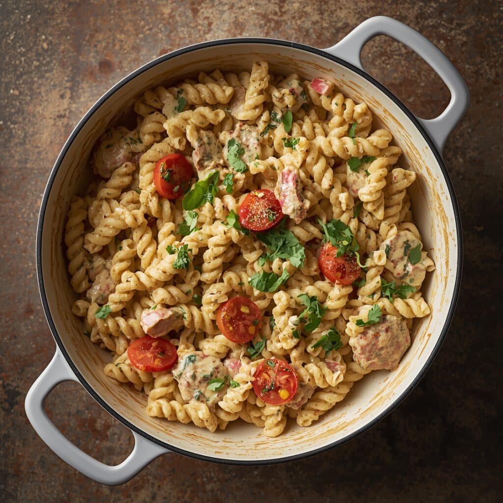 Short pasta shapes like rotini, penne, or shells work best because they hold the creamy dressing and other ingredients well. These shapes also provide a good balance of texture and flavor.