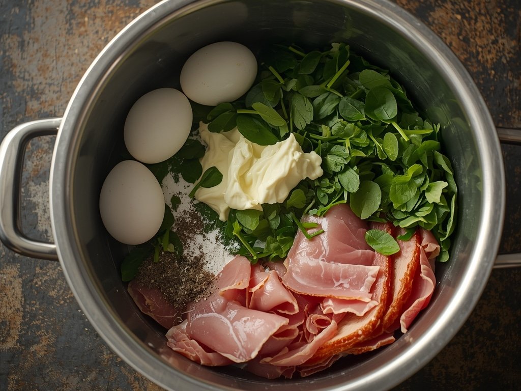 If you’re short on time, purchase pre cooked ham slices and pre hard boiled eggs. This will save you a lot of preparation time.