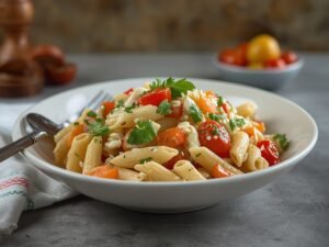 5. Pour the dressing over the pasta mixture and gently toss to coat.