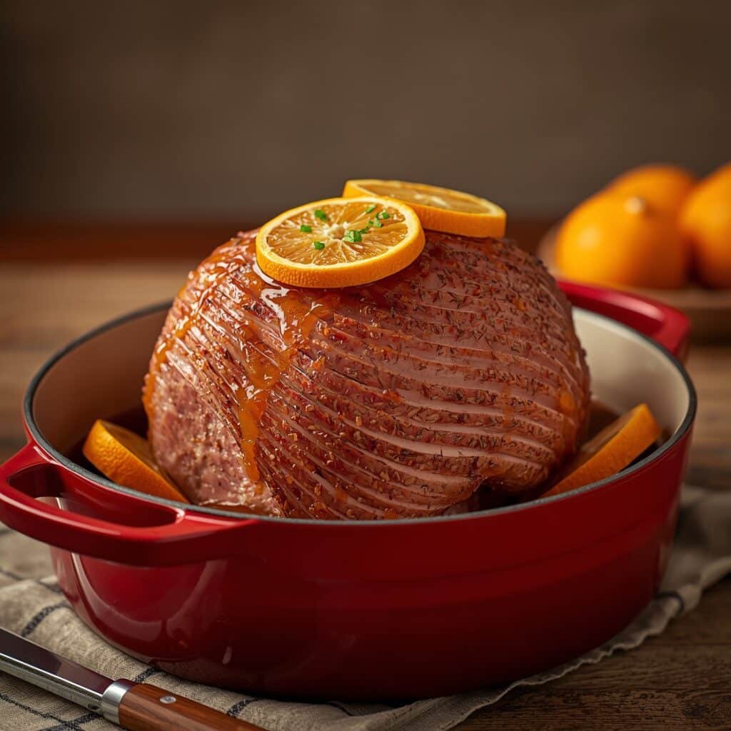 Honey Baked Ham w/ Orange-Brown Sugar Glaze, the star of so many holiday tables, brings back memories of family gatherings, laughter echoing through the house, and the irresistible aroma of sweet and savory goodness filling the air. Each slice of this Honey Baked Ham w/ Orange-Brown Sugar Glaze is a reminder of those cherished moments and the traditions we hold dear. It’s more than just a meal: it’s a symbol of togetherness and joy. Let’s create some new memories!