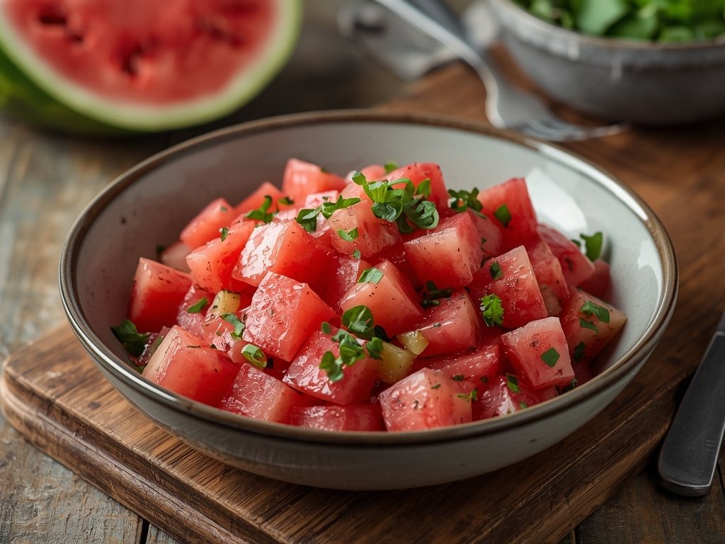 - Spicy Watermelon Cucumber Salad: Add a pinch of red pepper flakes or a thinly sliced jalapeño to the salad for a little heat.