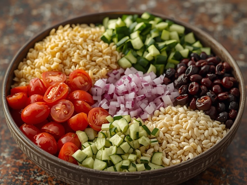This vibrant Orzo Salad Recipe is a delightful mix of pasta, fresh vegetables, feta cheese, and a tangy Greek dressing, perfect as a side or light meal.