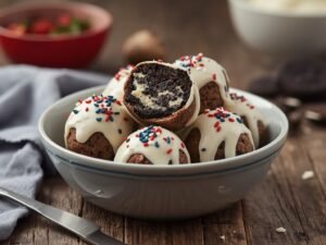 5. Dip the sides in melted white chocolate and sprinkle with red, white, and blue sprinkles.