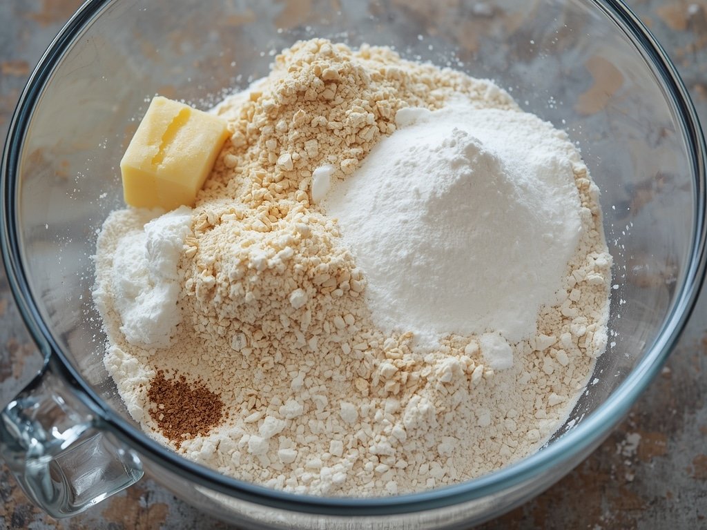 - 2. In a large bowl, whisk together the flour, sugar, baking powder, and salt.