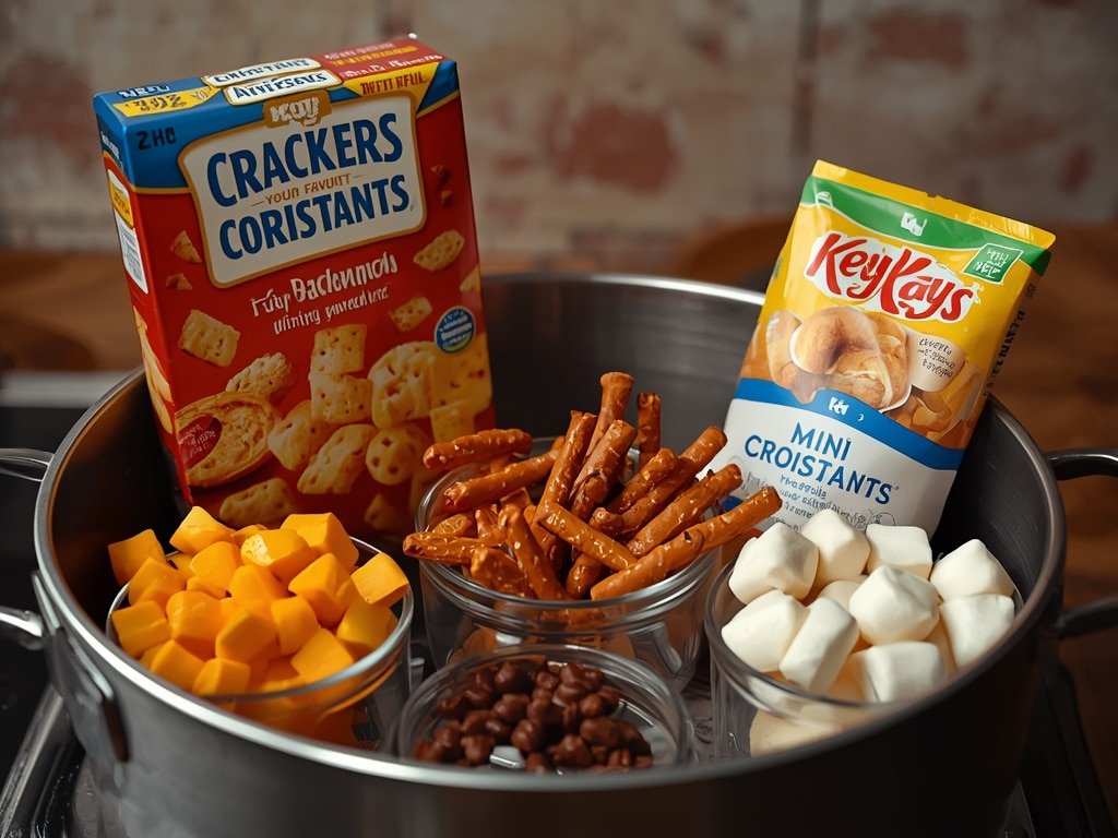 * Crackers (your favorite variety): 1 box * Mini Croissants: 6 * Pretzel Sticks: 1 cup