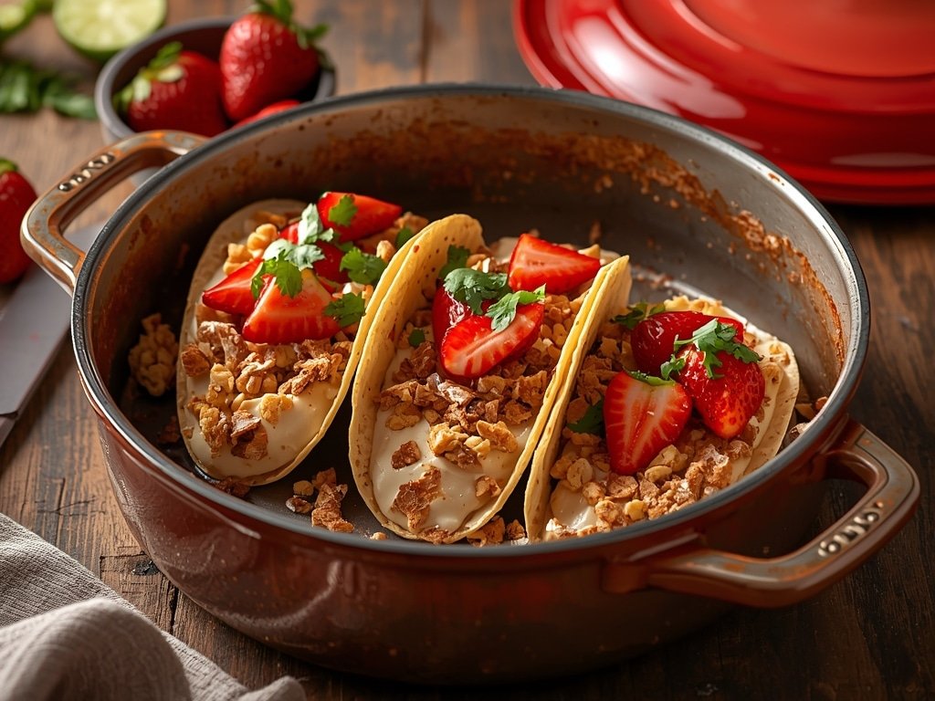 - For an extra layer of flavor, try brushing the baked taco shells with a thin layer of melted white chocolate before filling. Just be sure the white chocolate sets before filling the tacos. You can find similar delight in Cheesecake Deviled Strawberries.