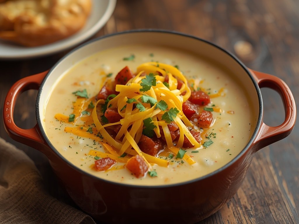 - 6. Serve and Garnish: Ladle the creamy potato soup into bowls. Top with shredded cheddar cheese, crispy bacon crumbles, a dollop of sour cream, and sliced green onions. Serve immediately and enjoy! Looking for something to pair with it? My green bean casserole is a delightful combination of comfort food.