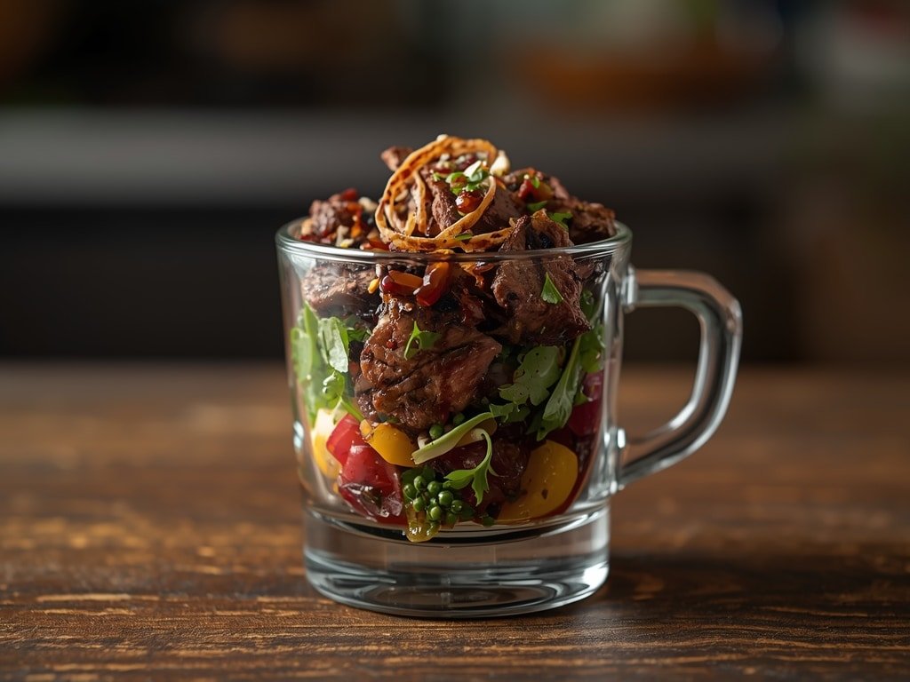 Reheat the steak gently in a skillet or microwave before adding it to the salad. Freezing is not recommended, as it can affect the texture of the steak and greens.